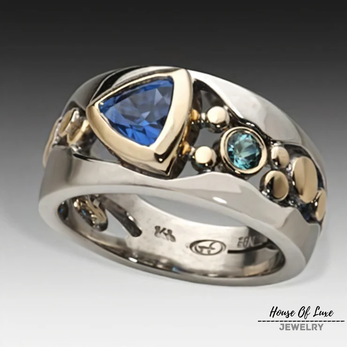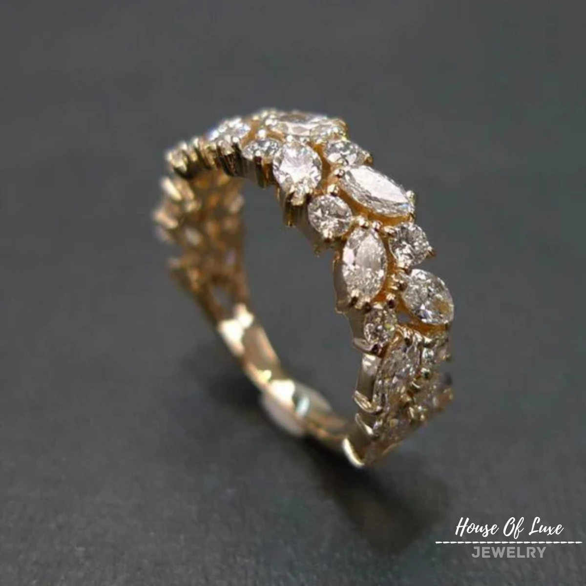 ELEGANT INLAID CRYSTAL GOLD RING