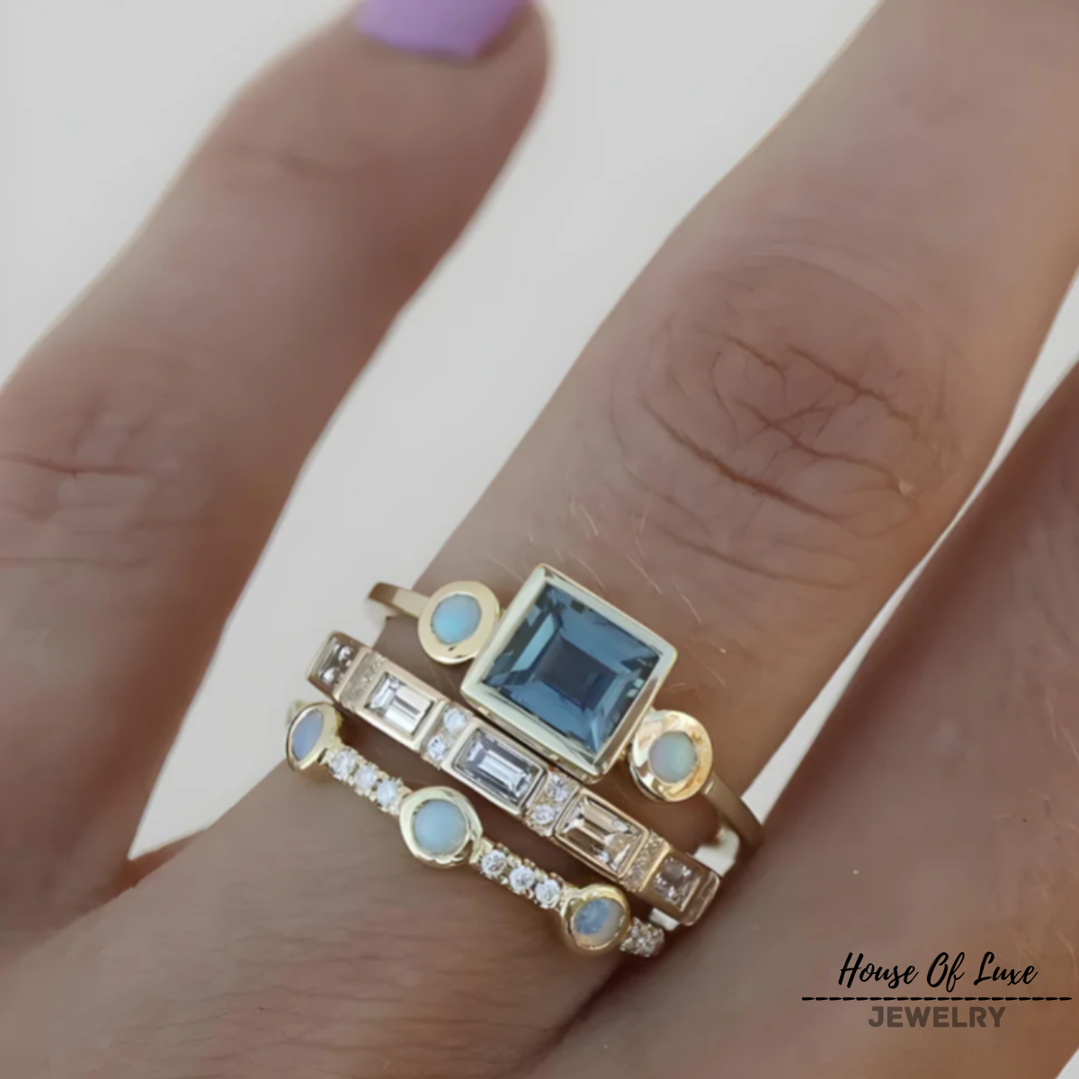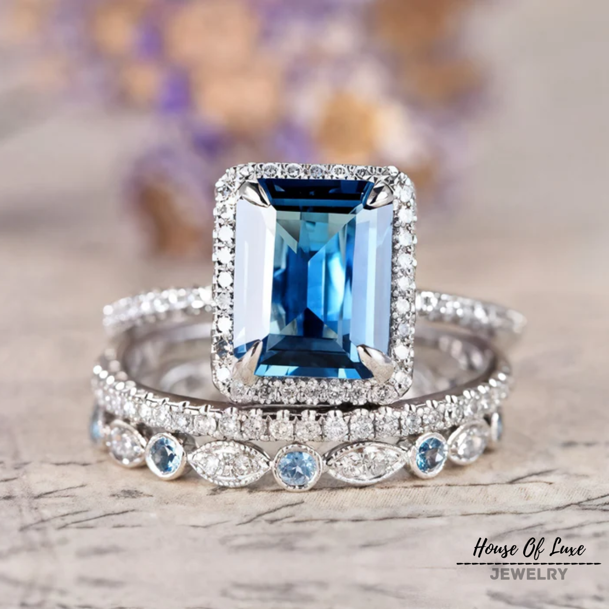 VINTAGE BLUE CRYSTAL RING SET