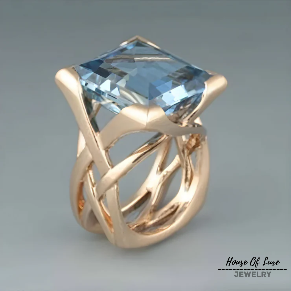 VINTAGE ROSE GOLD BLUE ZIRCONIA RING