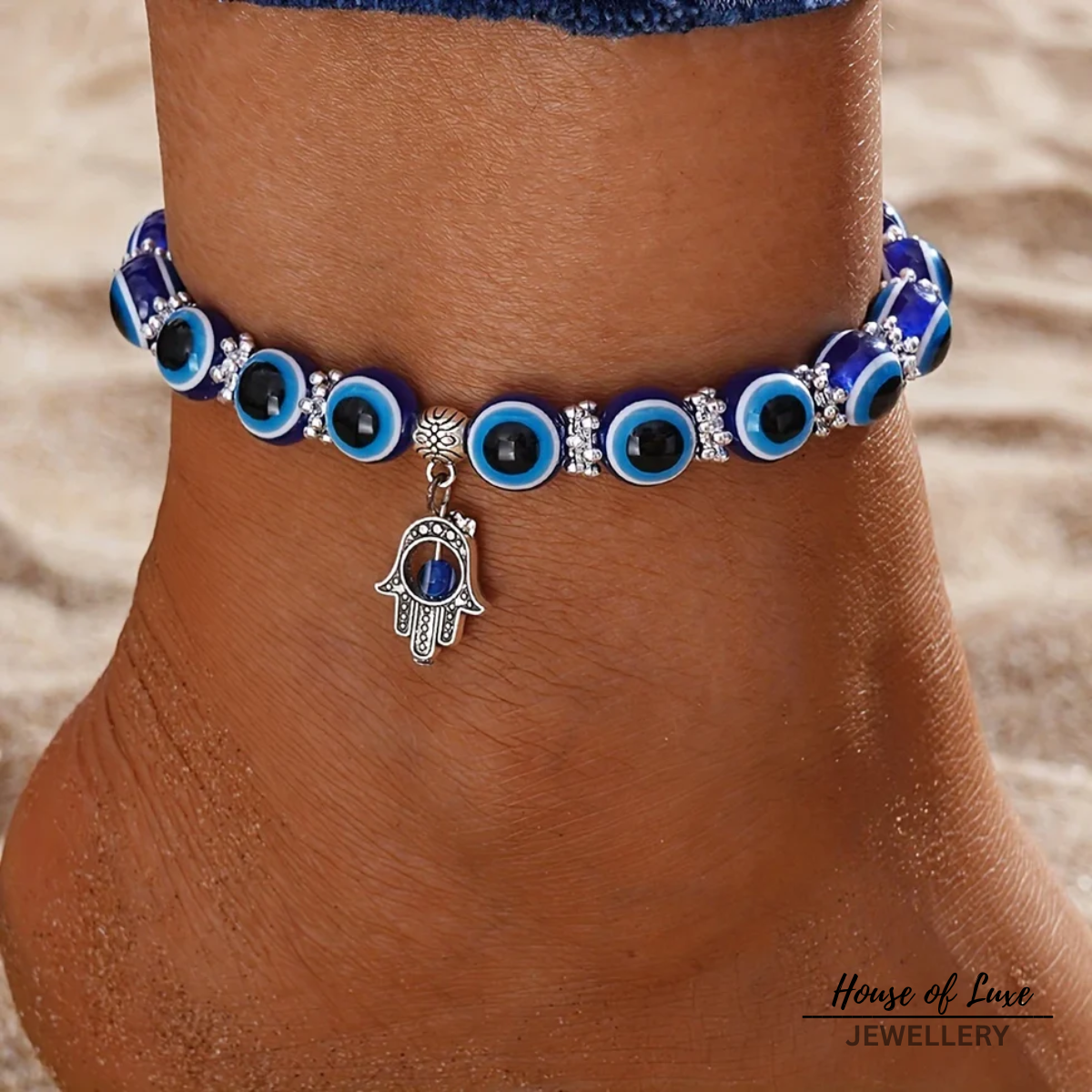 BLUE CRYSTAL SILVER ANKLET BRACELET
