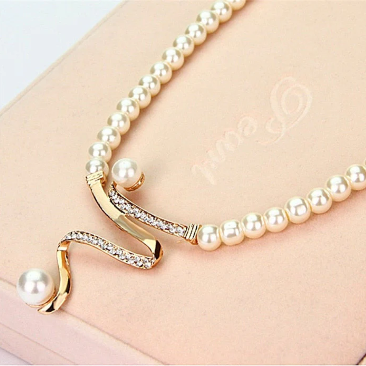 ELEGANT NATURAL PEARL NECKLACE AND EARRINGS SET
