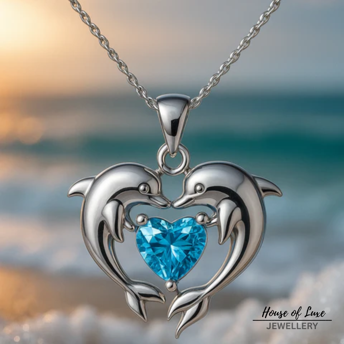 DOUBLE SILVER DOLPHINE LOVE NECKLACE