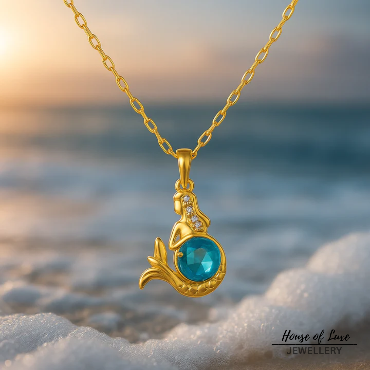 GOLDEN MERMAID BLUE CRYSTAL NECKLACE