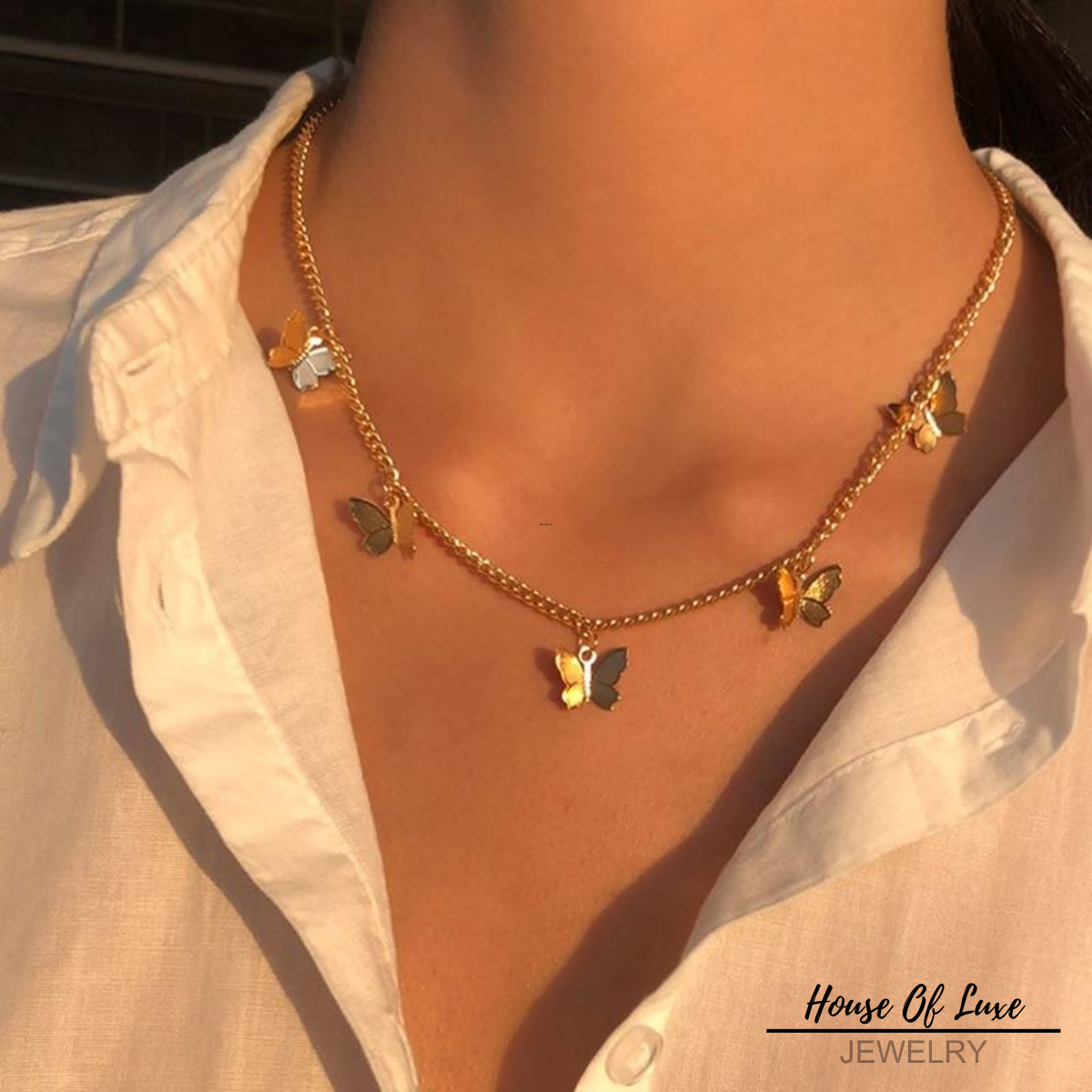 SILVER AND GOLD PLATED BUTTERFLY NECKLACE