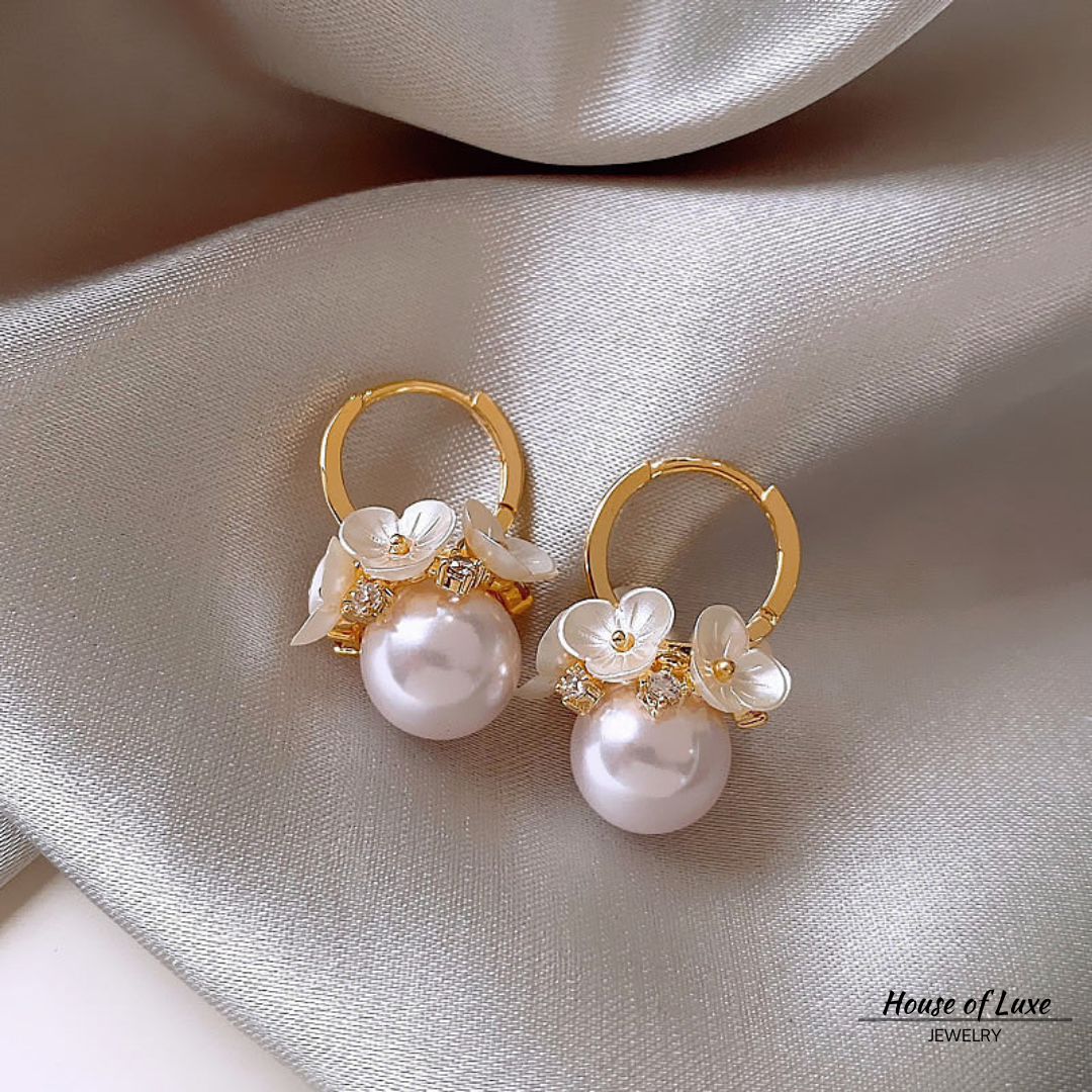 ELEGANT PEARL EARRINGS WITH FLOWERS