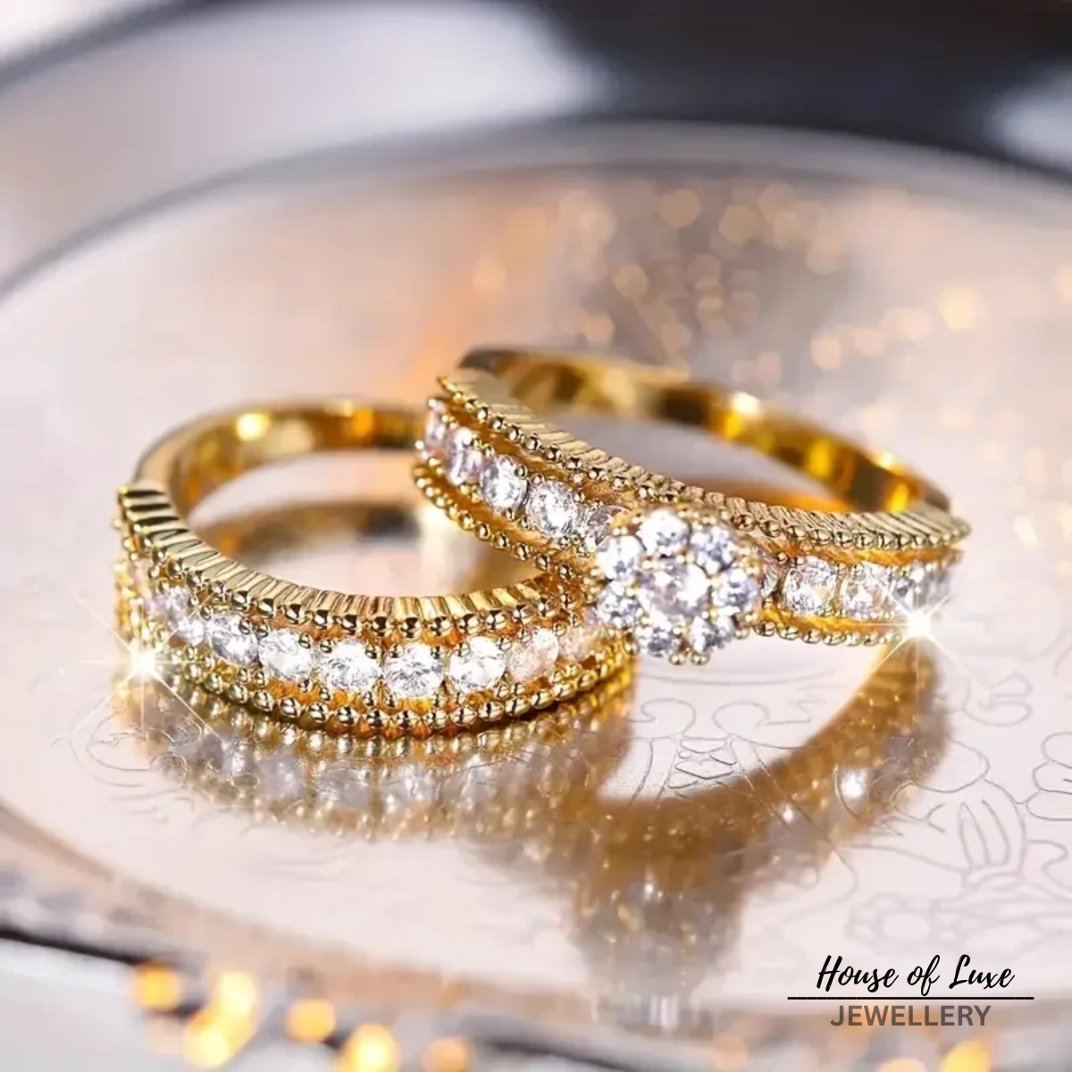 BRIGHT ZIRCONIA GOLD RING SET