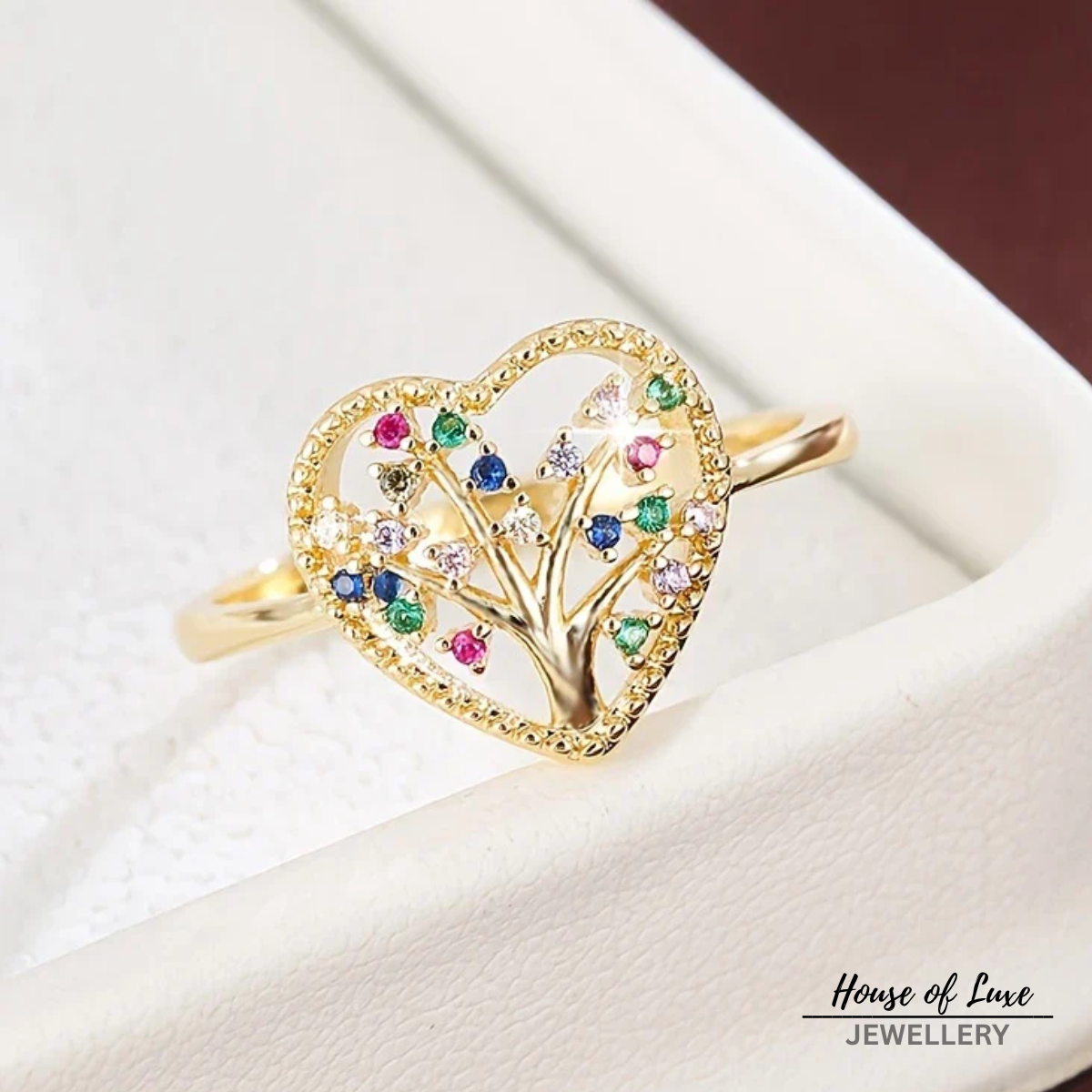 COLOURFUL CRYSTAL HEART THIN GOLDEN RING