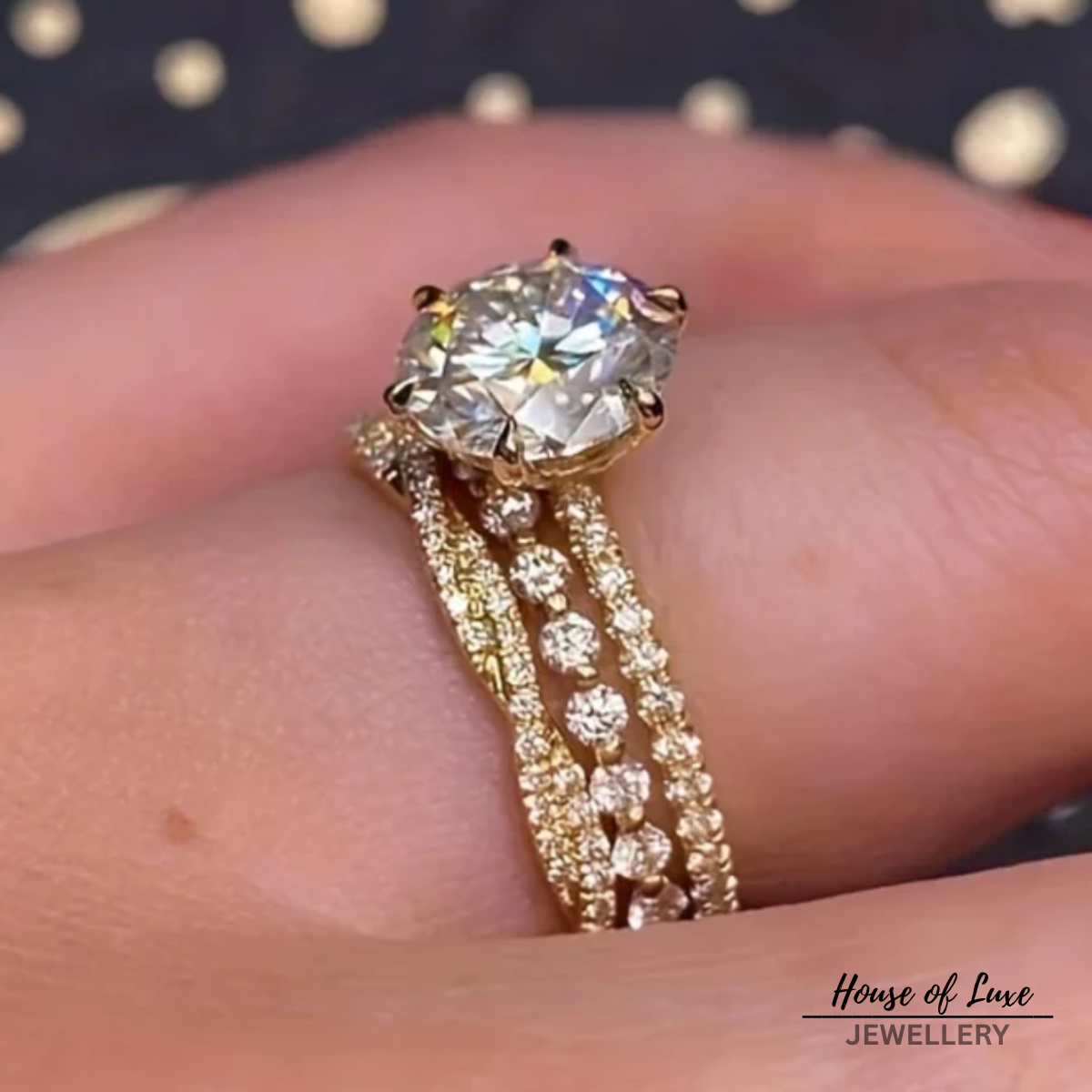 ELEGANT LAYERED GOLDEN ZIRCONIA RING