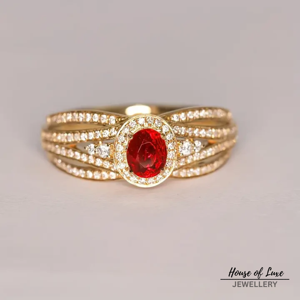 ELEGANT LAYERED RED CRYSTAL GOLD RING