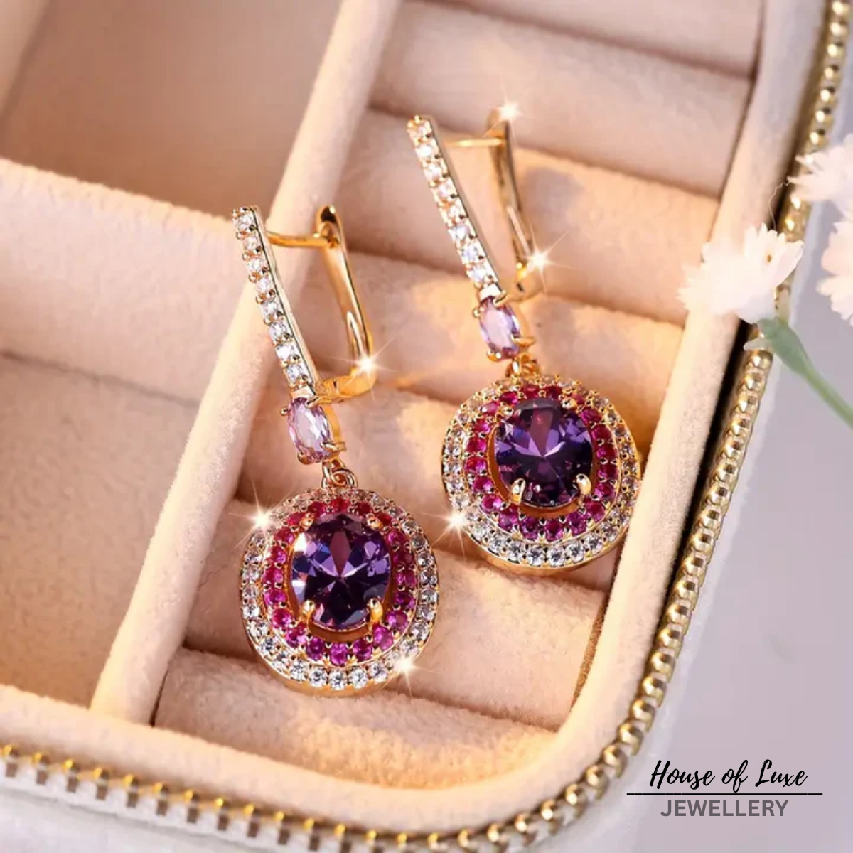 ROUNDED VIOLET PINK GOLDEN BRIGHT EARRINGS