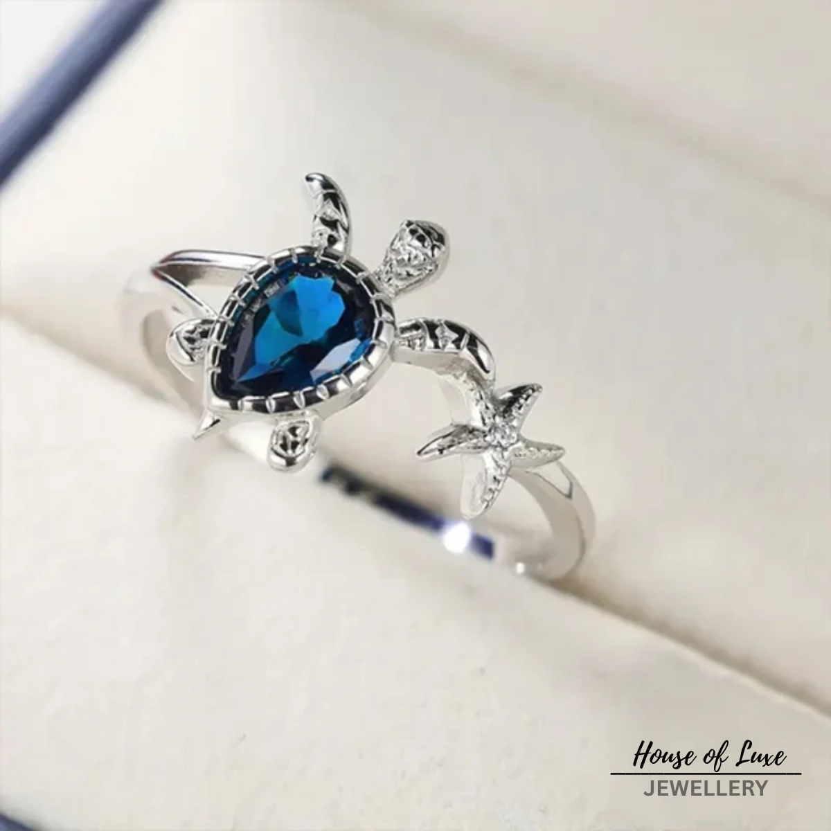 TURTLE BLUE CRYSTAL SILVER RING