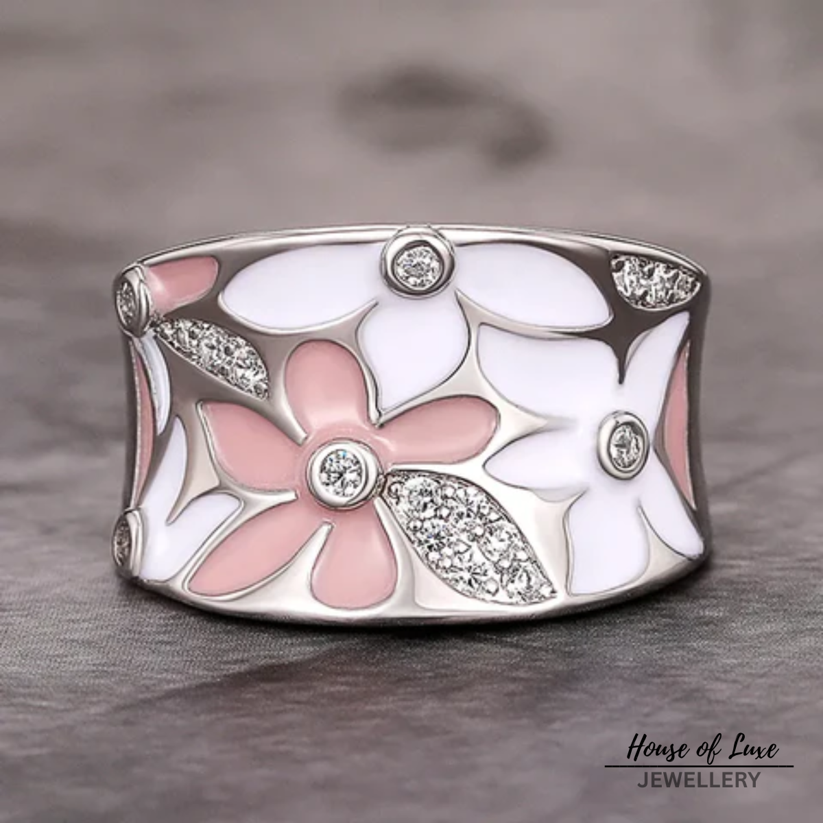 VINTAGE ENAMEL FLOWER ZIRCONIA RING