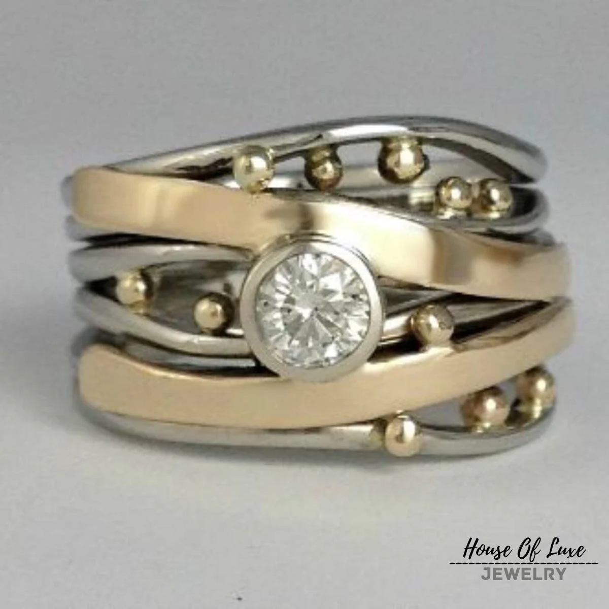 VINTAGE GOLD INLAID ZIRCONIA RING