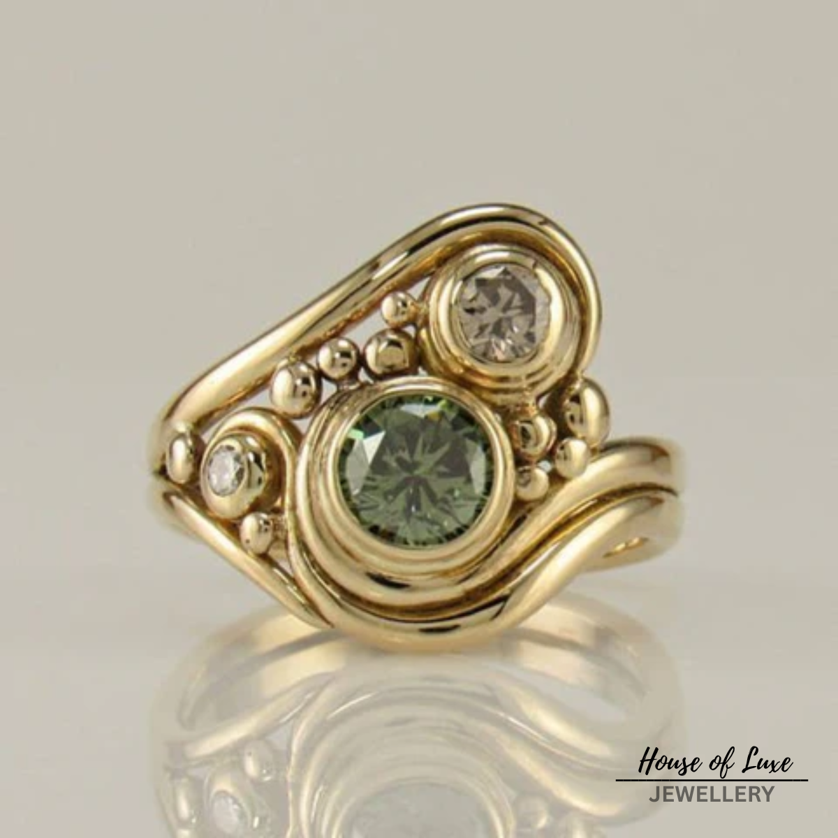 VINTAGE GOLDEN GREEN ZIRCONIA RING