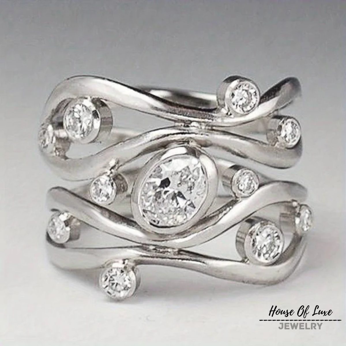 VINTAGE SILVER & ZIRCONIA IRREGULAR RING