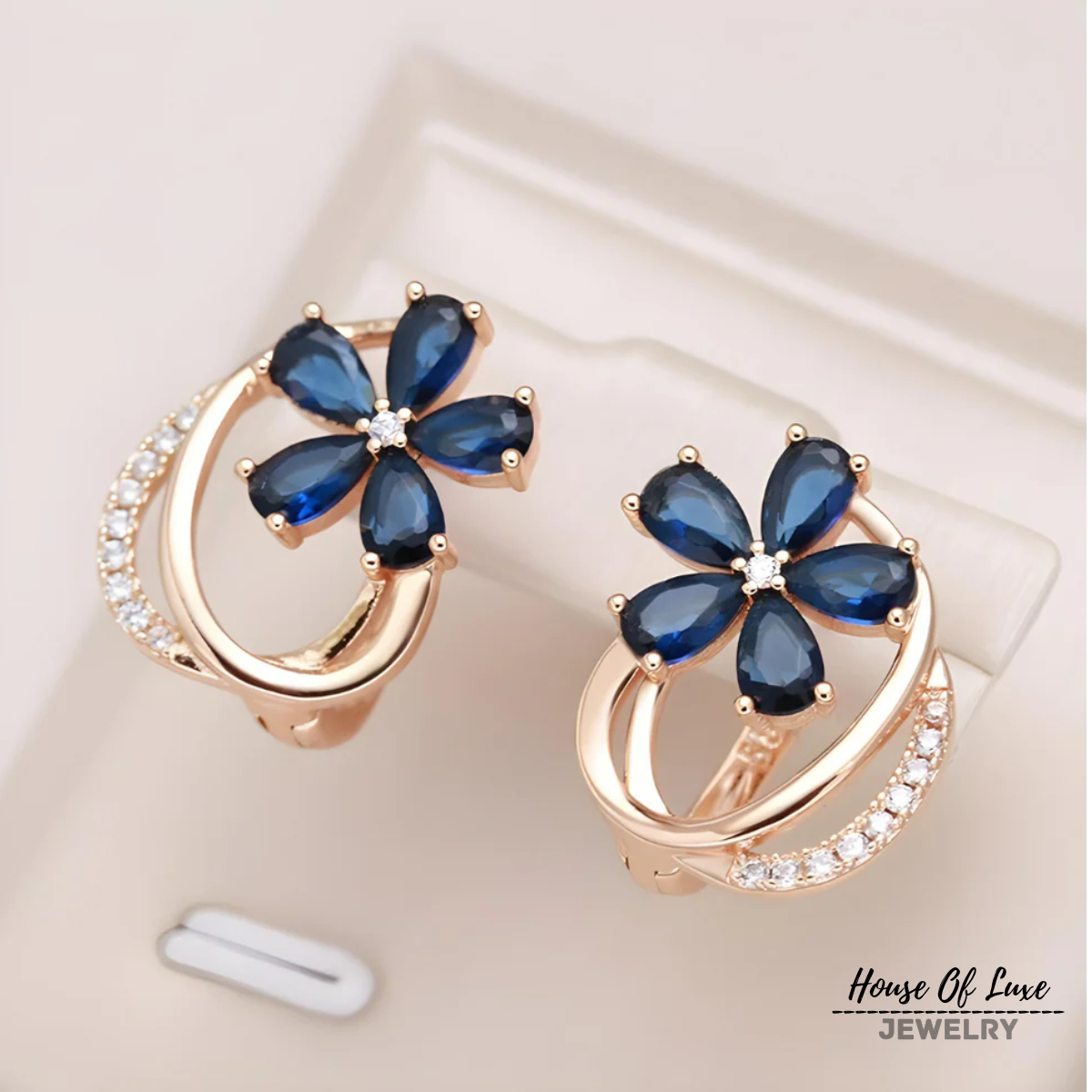 GOLD PLATED SAPPHIRE FLOWER EARRINGS