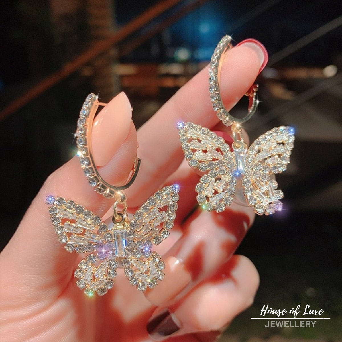 BUTTERFLY EARRINGS WITH ZIRCONIA IN GOLD