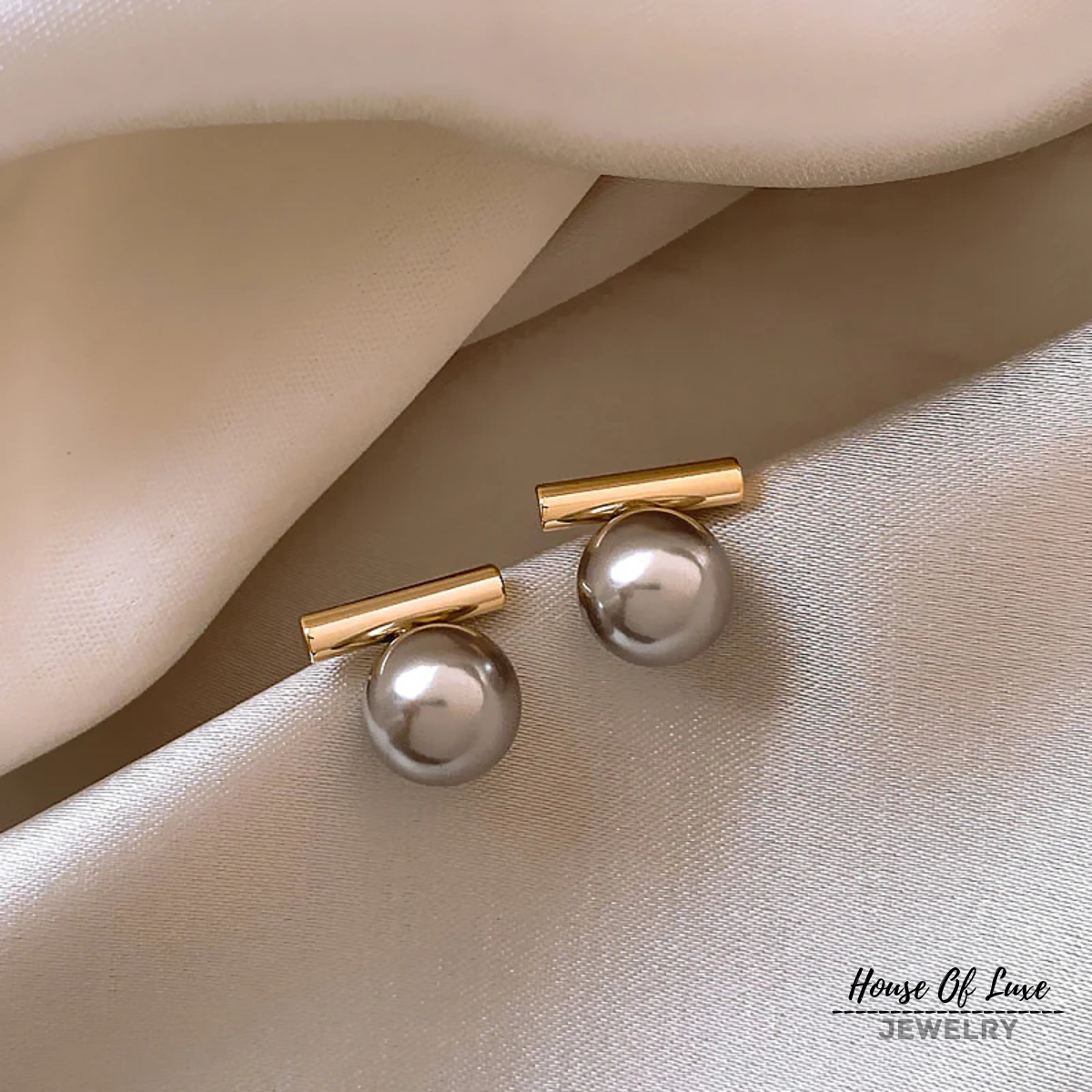 ELEGANT DARK PEARL EARRINGS IN GOLD