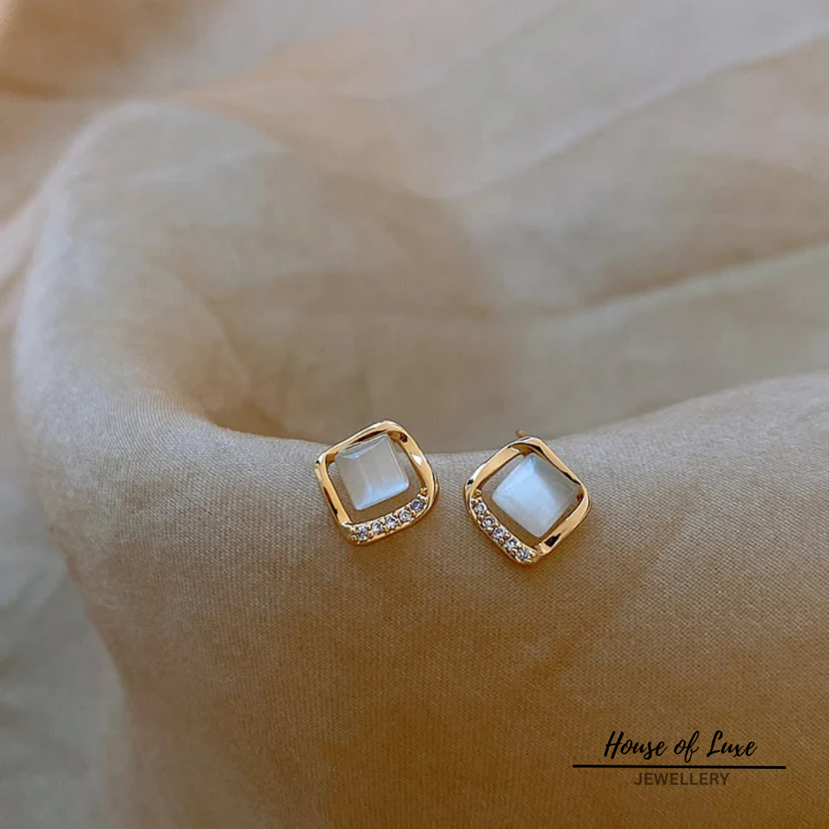 ELEGANT EARRINGS WITH GOLD MOON CRYSTAL