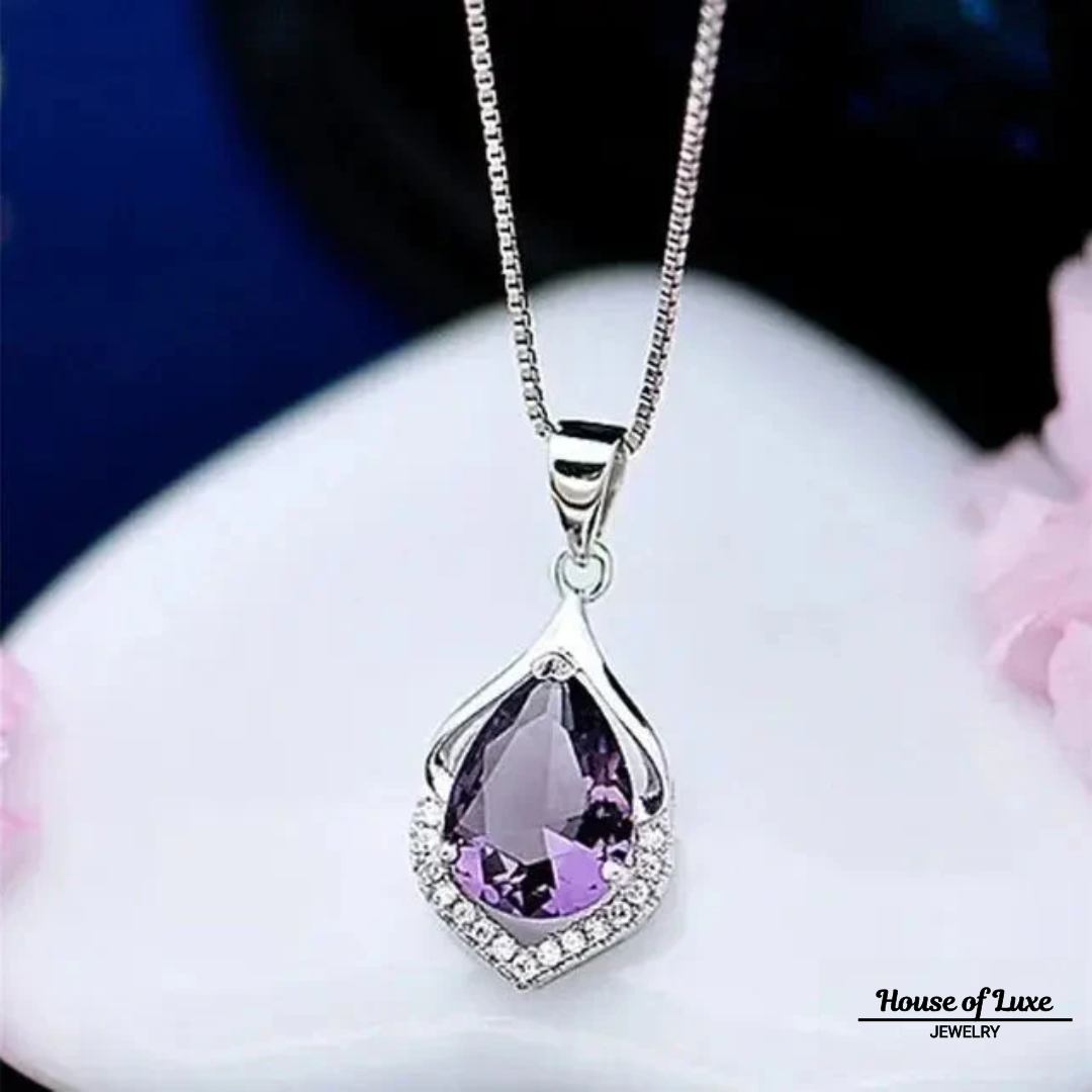 ELEGANT NECKLACE WITH PURPLE CRYSTAL