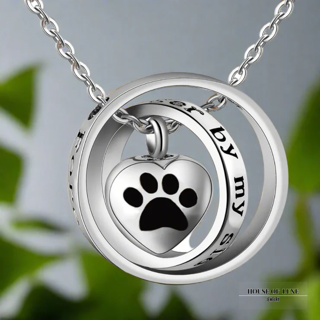 NO LONGER BY MY SIDE, FOREVER IN MY HEART' STAINLESS STEEL PAW NECKLACE