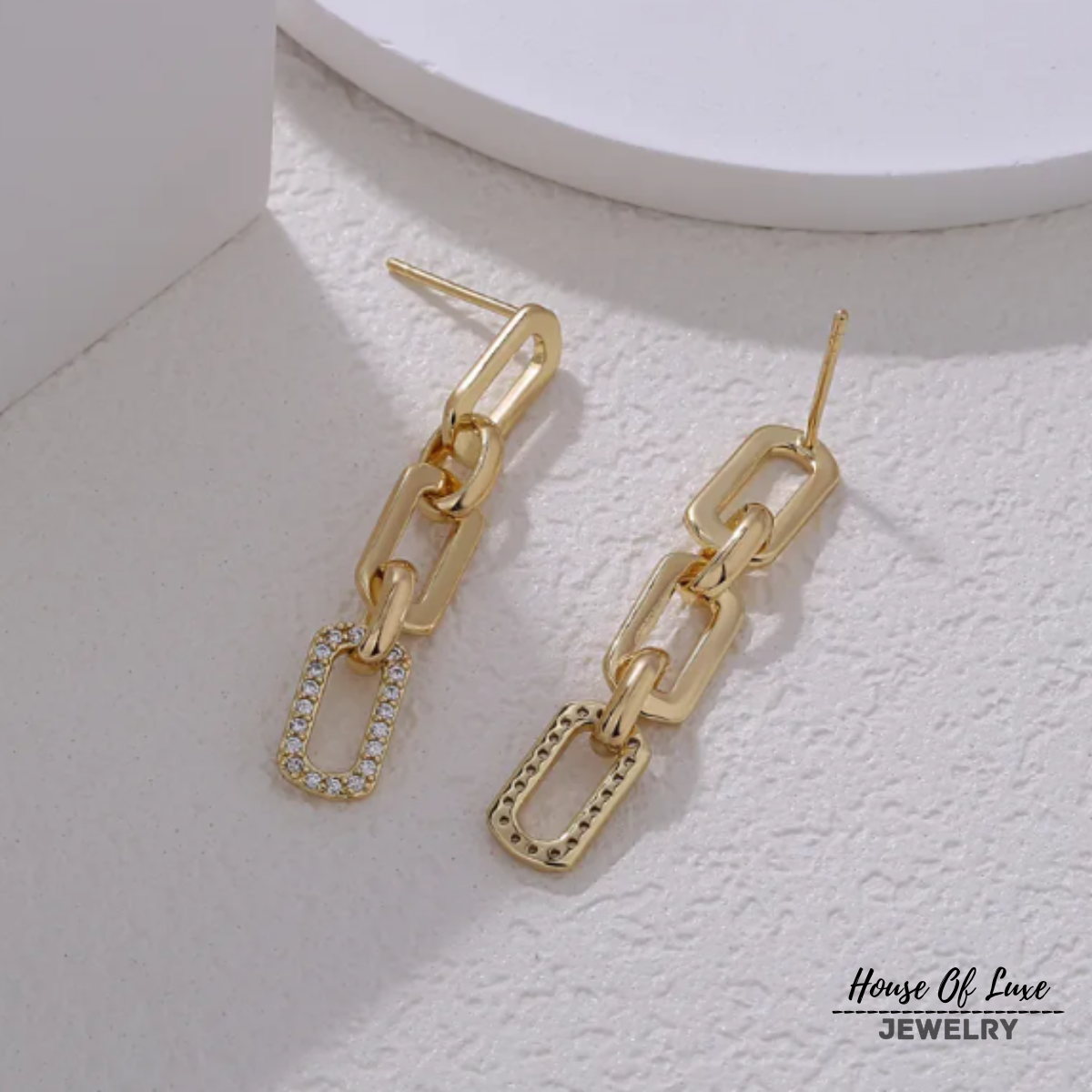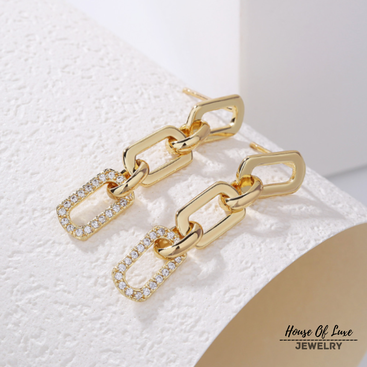 GEOMETRIC ZIRCON-INLAID EARRINGS