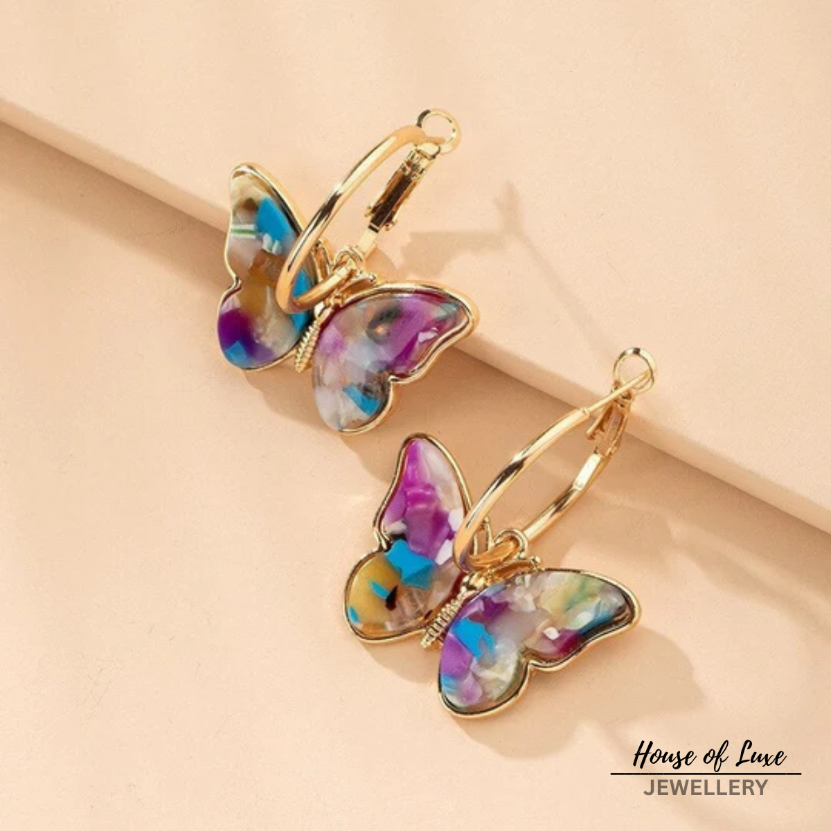 HAND PAINTED ENAMEL CRYSTAL BUTTERFLY EARRINGS