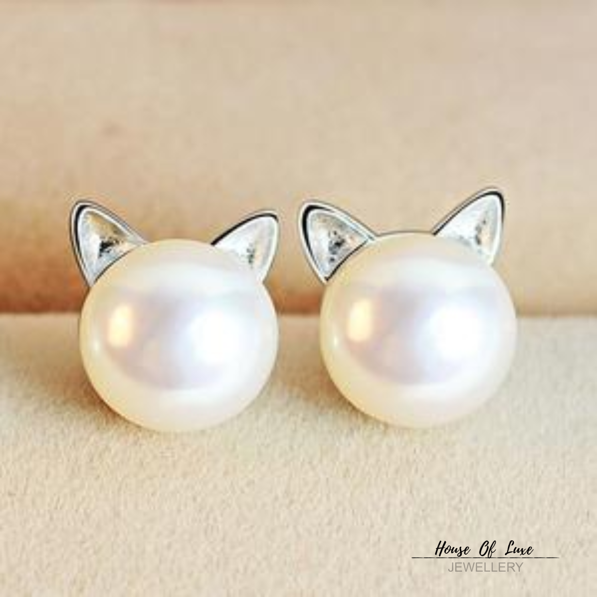 PURR-FECTION IN PEARLS: KITTEN EARRINGS WITH CULTURED PEARLS & STERLING SILVER