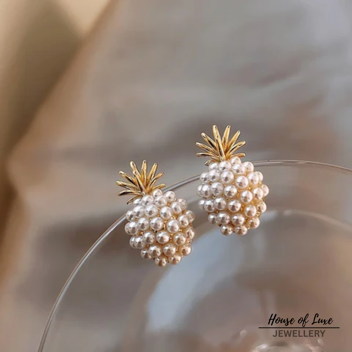 TROPICAL PINEAPPLE AND PEARL ENCRUSTED EARRINGS