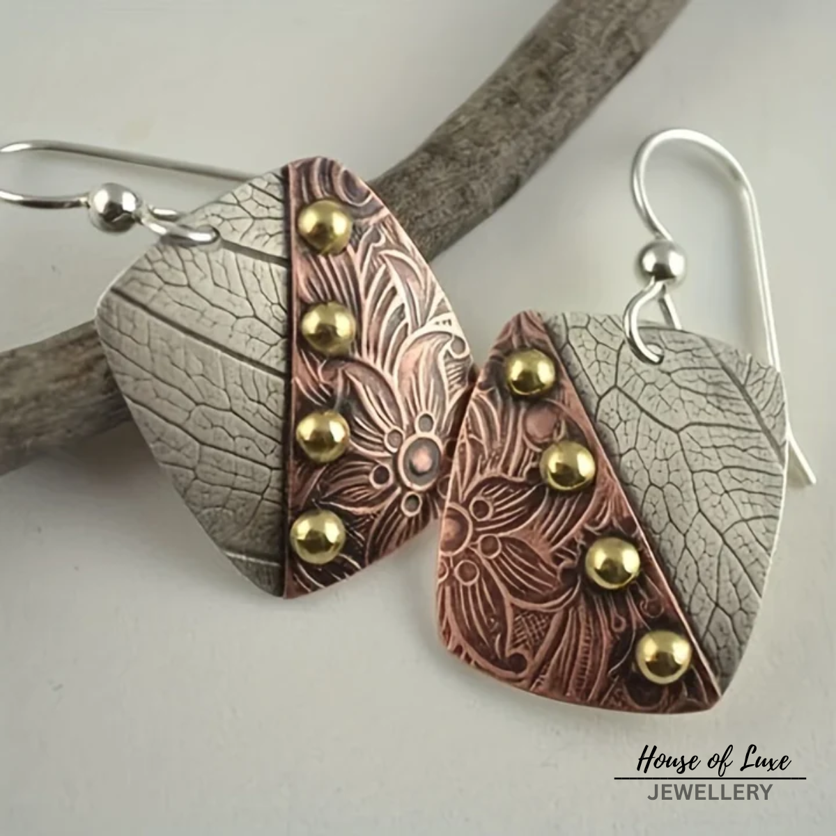 VINTAGE BROWN SQUARE SILVER EARRINGS