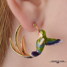 VINTAGE ENAMEL HUMMINGBIRD HOOP EARRINGS