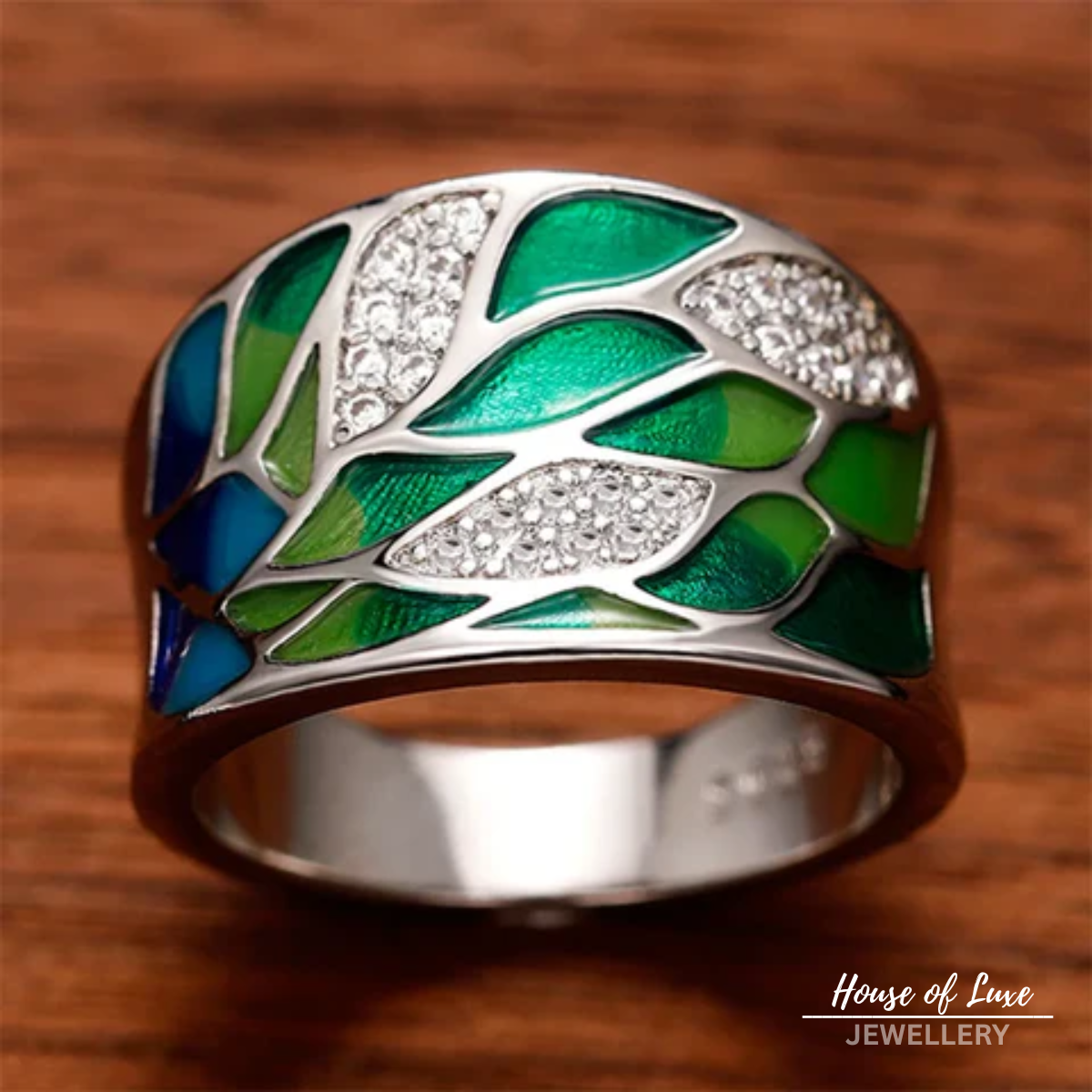 VINTAGE GREEN ENAMEL ZIRCONIA RING