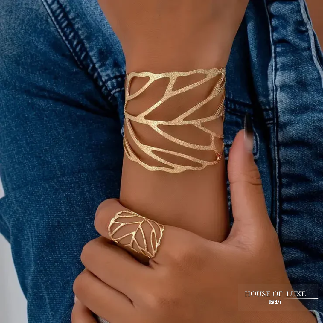 VINTAGE LEAF-DESIGN CUFF BRACELET