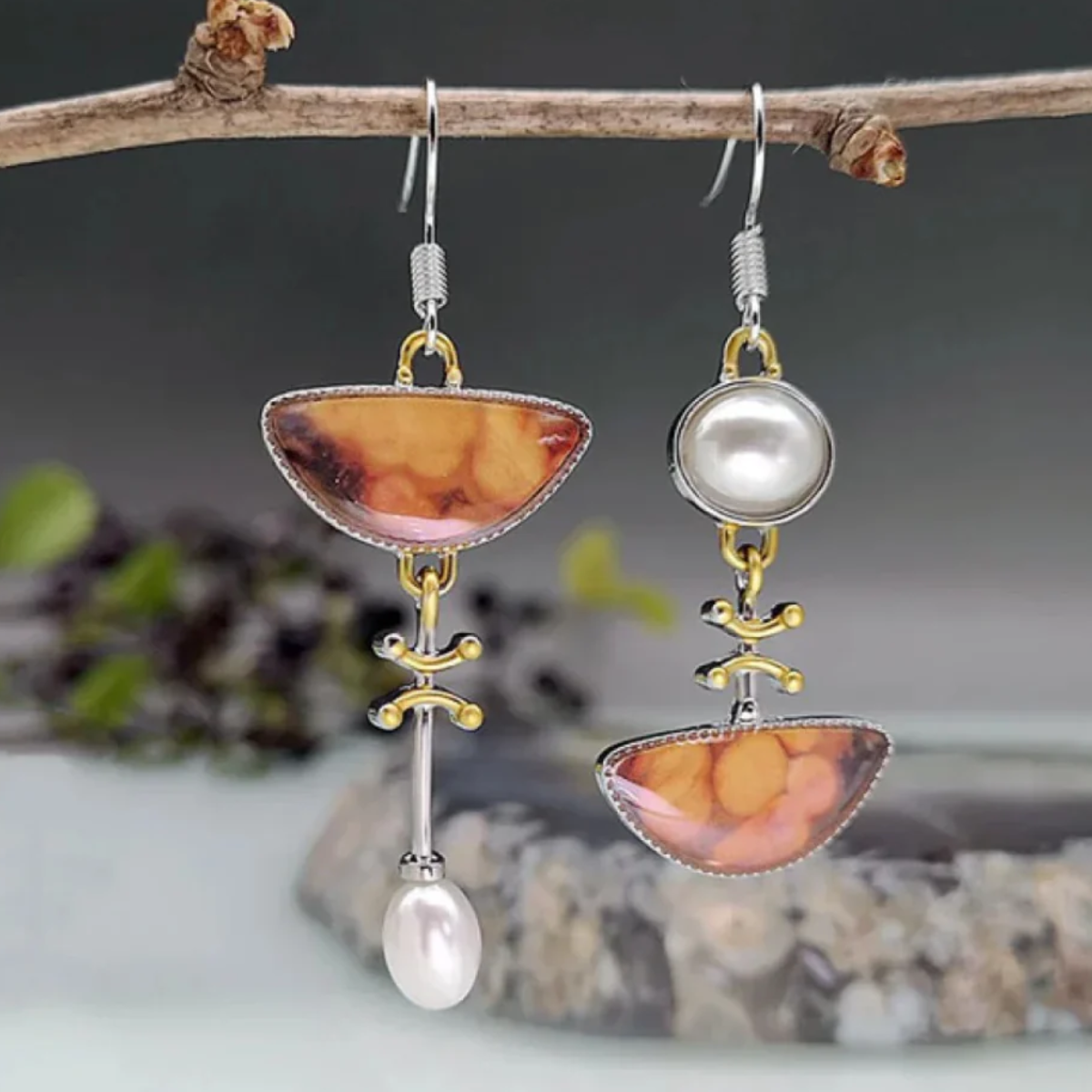 VINTAGE NATURAL ORANGE STONE EARRINGS