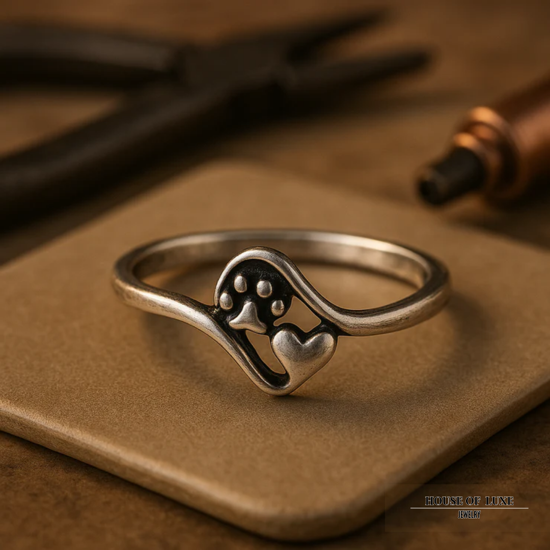 VINTAGE STERLING PAW AND HEART RING