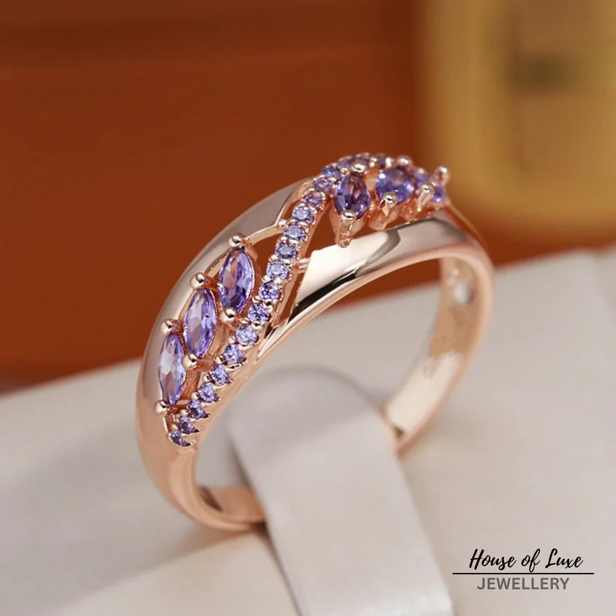 VIOLET HOLLOW CRYSTAL GOLD RING